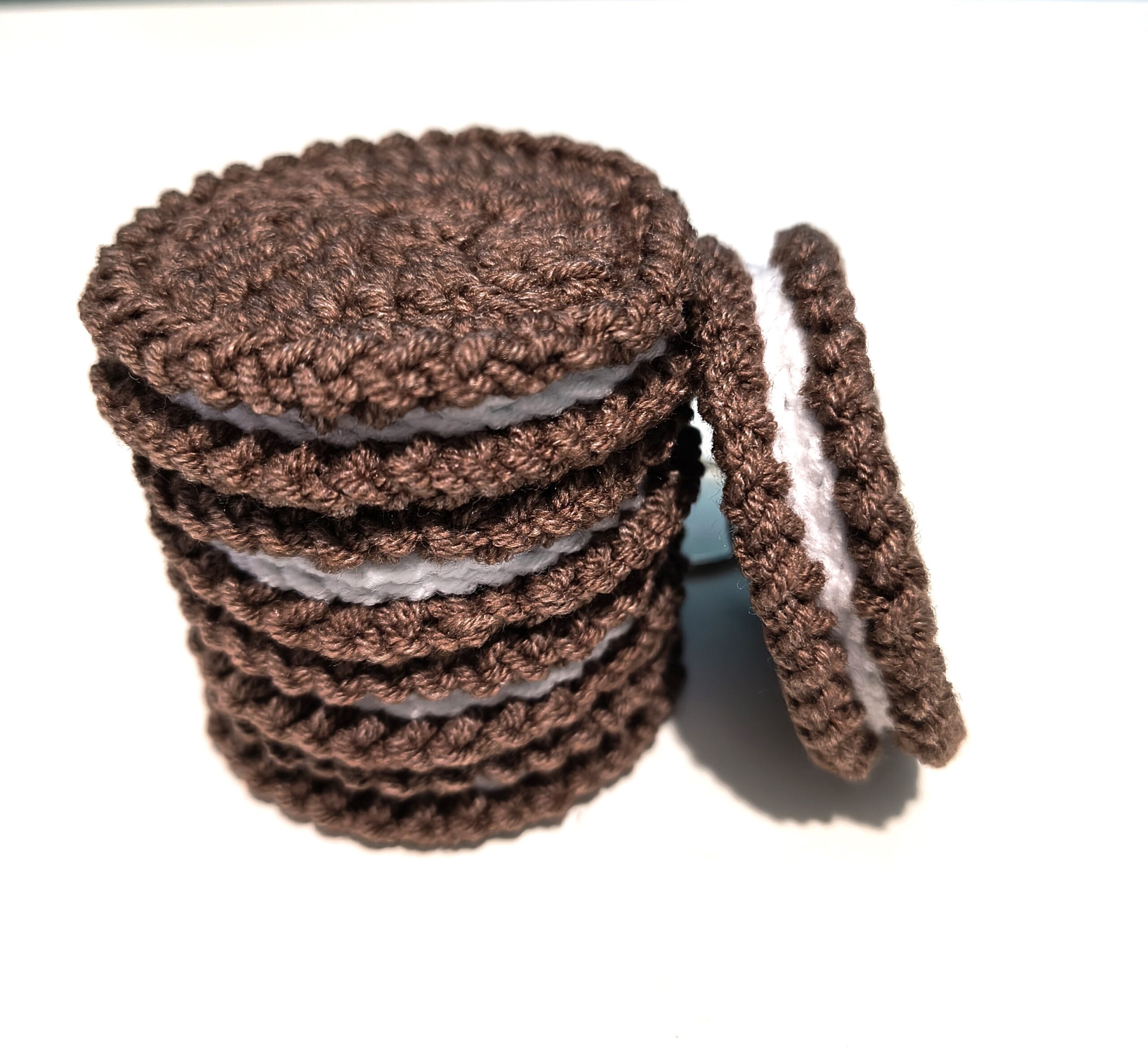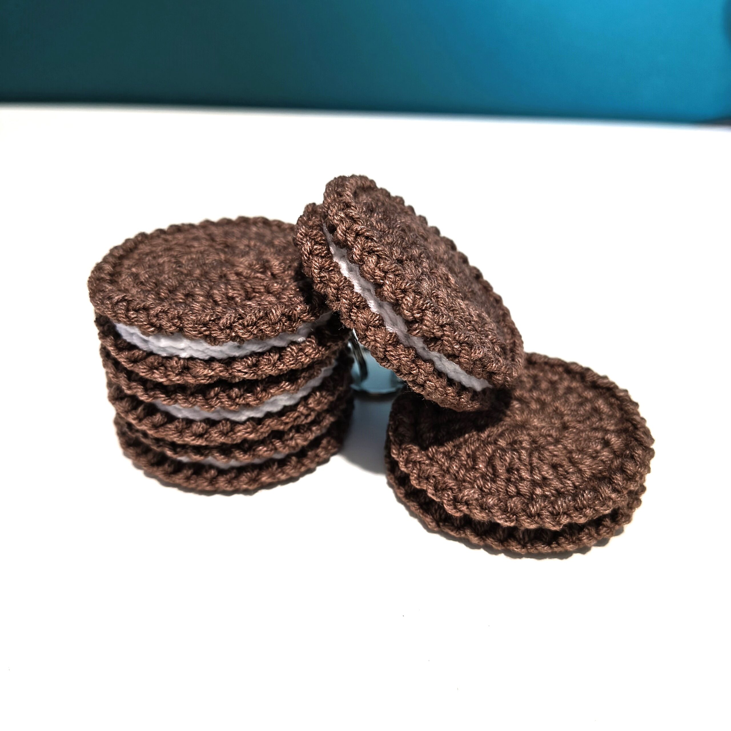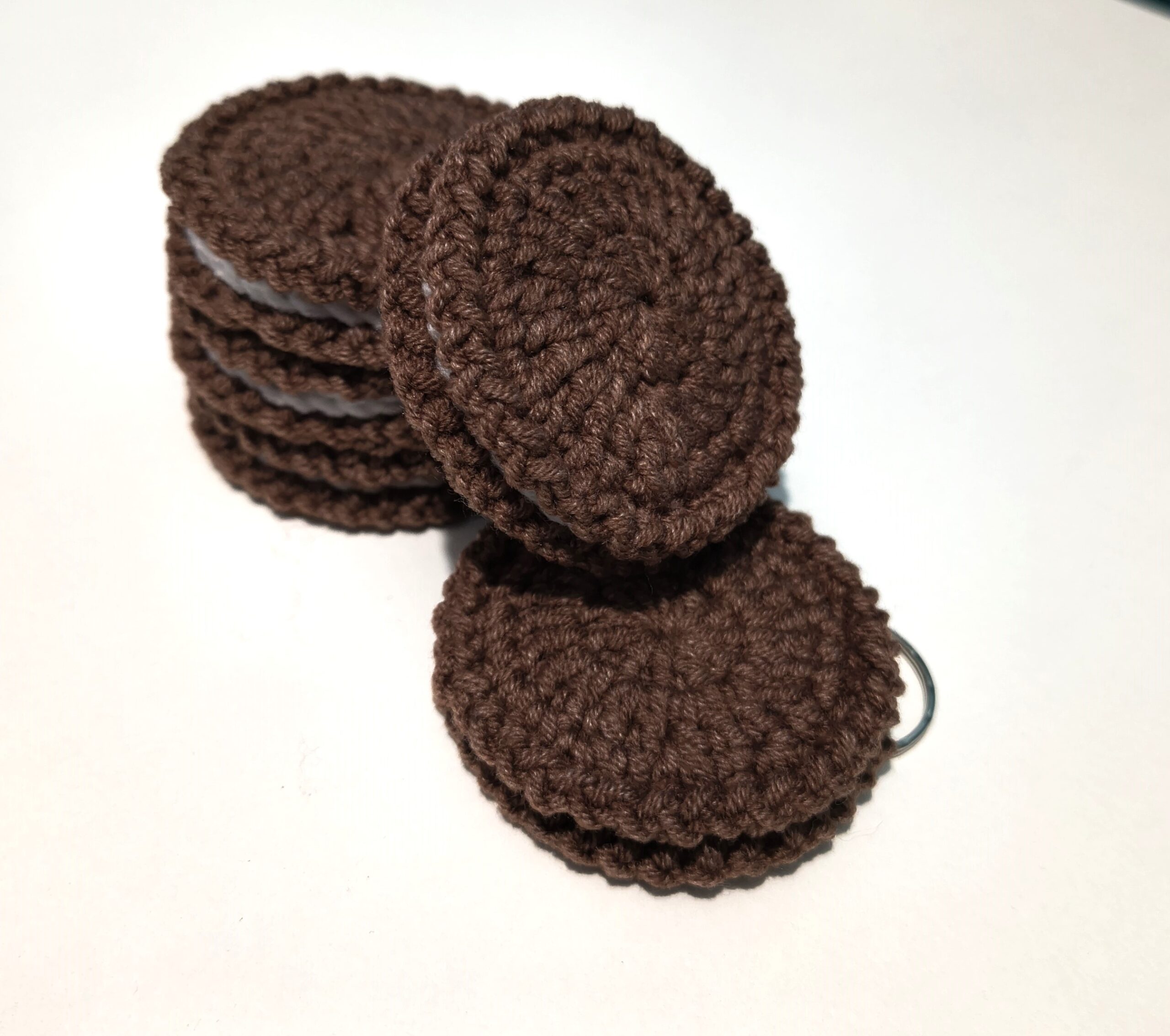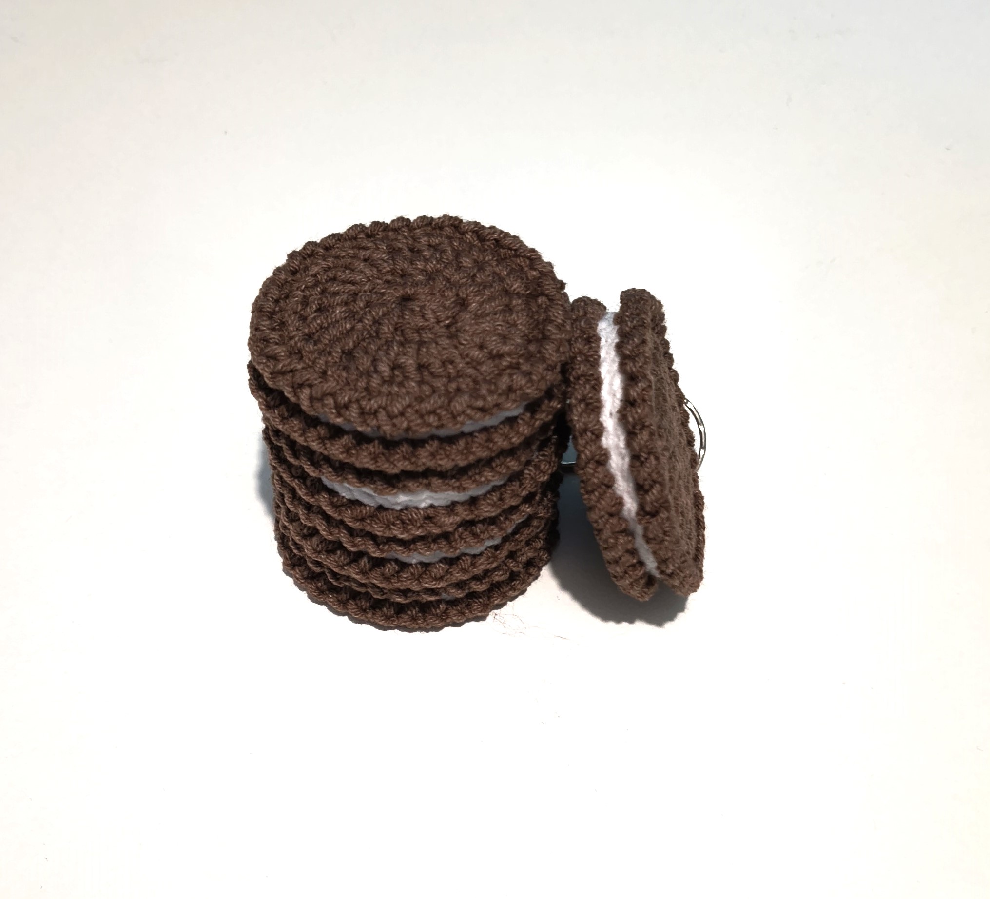 Breloczek w kształcie ciastka ze śmietankowym nadzieniem.