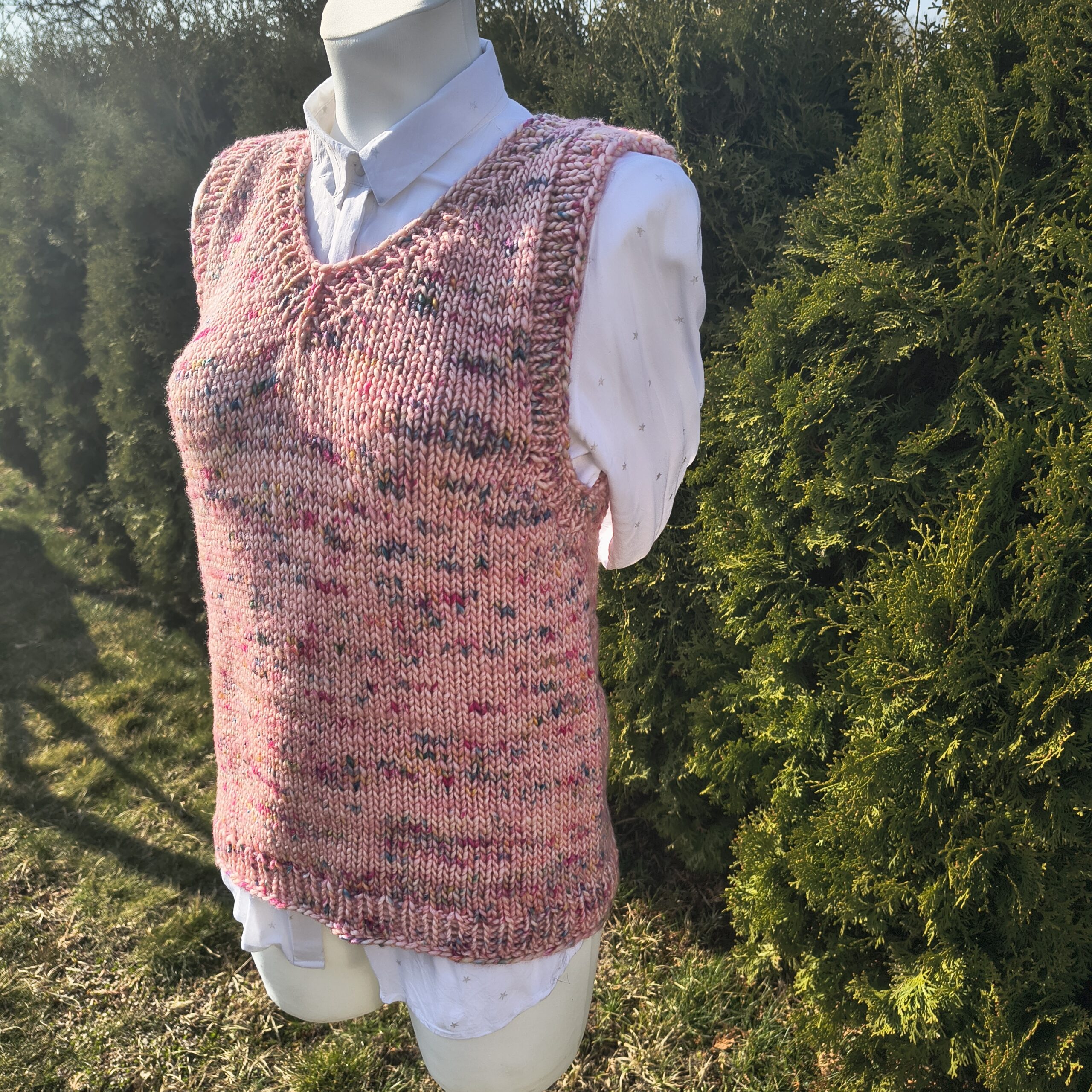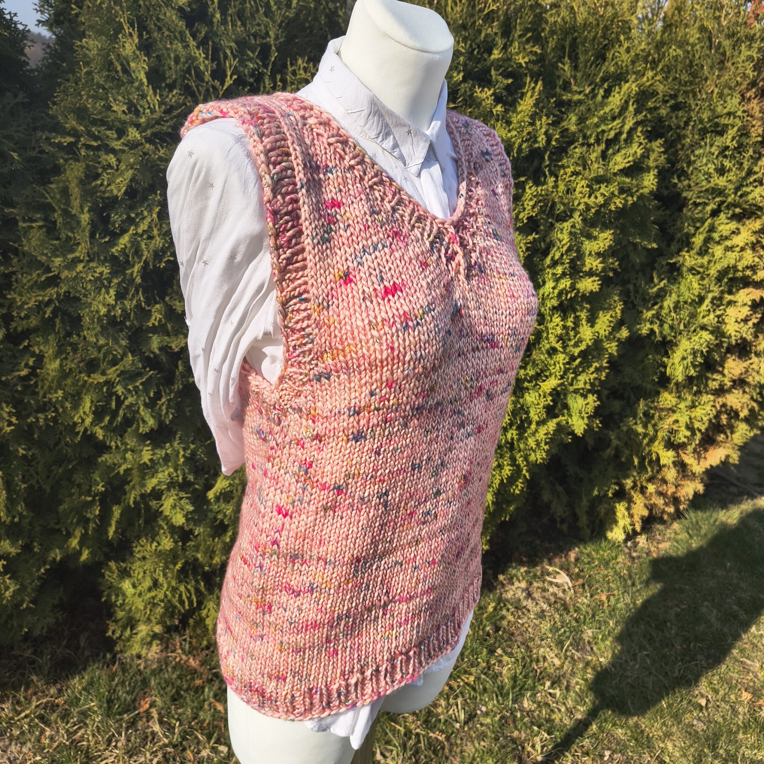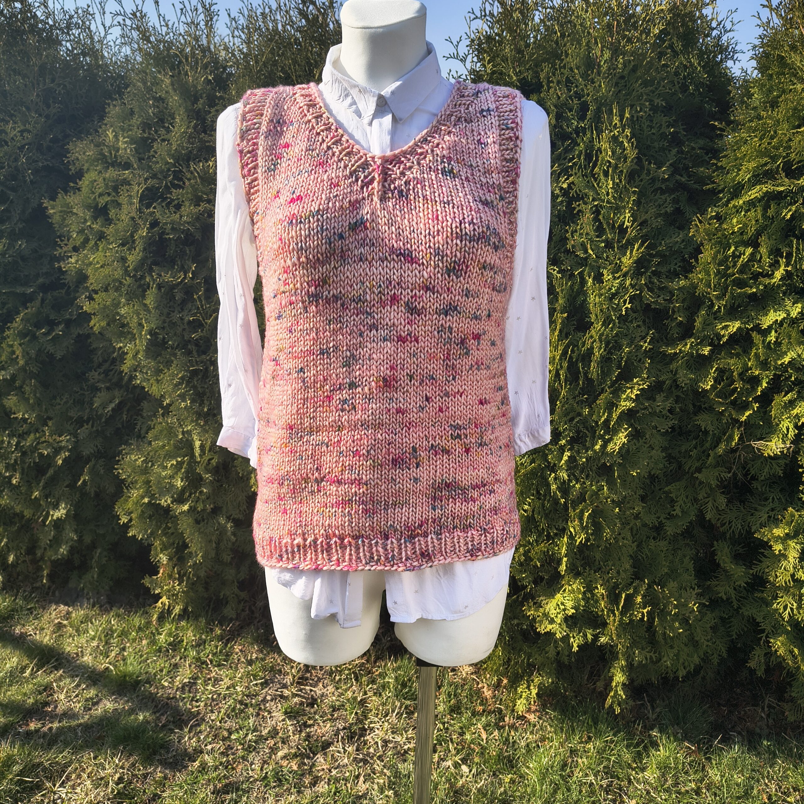 Kamizelka dziergana ręcznie ze 100% wełny farbowanej ręcznie.