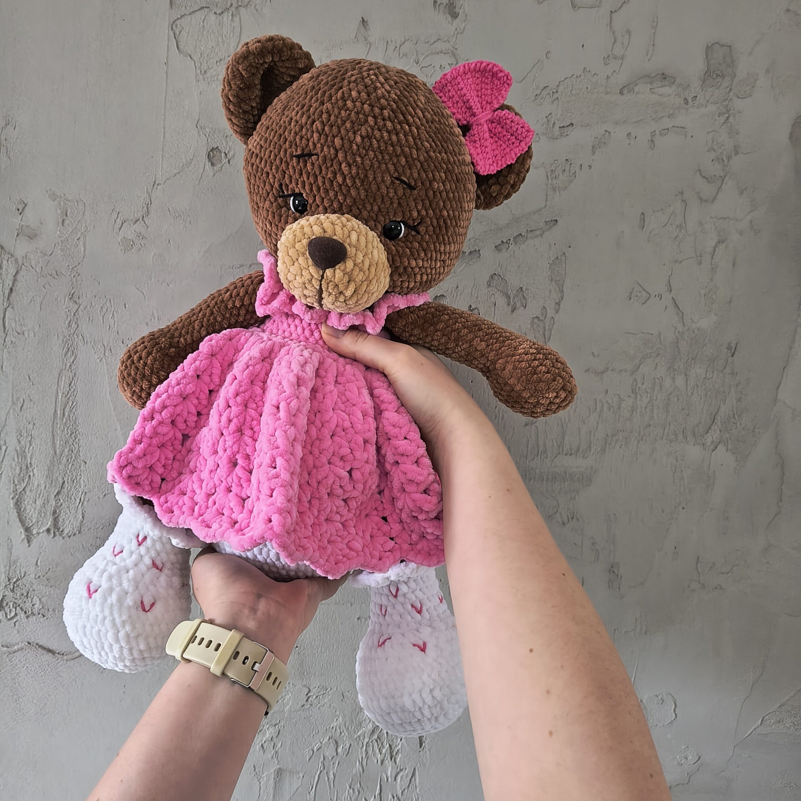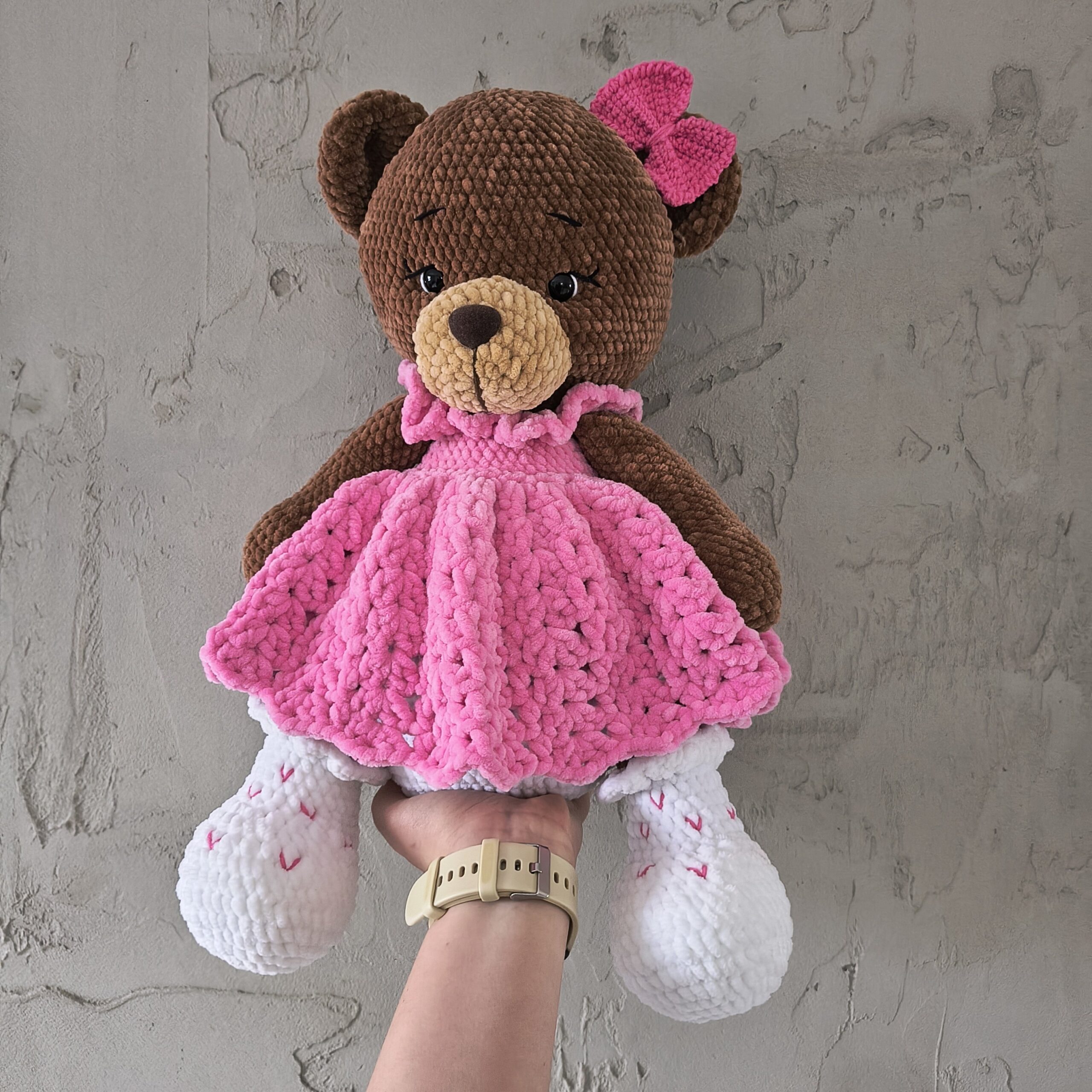 Tym razem Misia Marysia że wzoru od Dziergalnia Marty . Największy miś jakiego wydziergałam do tej pory- na siedząco panienka ma 37cm, a jak wstanie to robi się z tego ok. 44cm.
